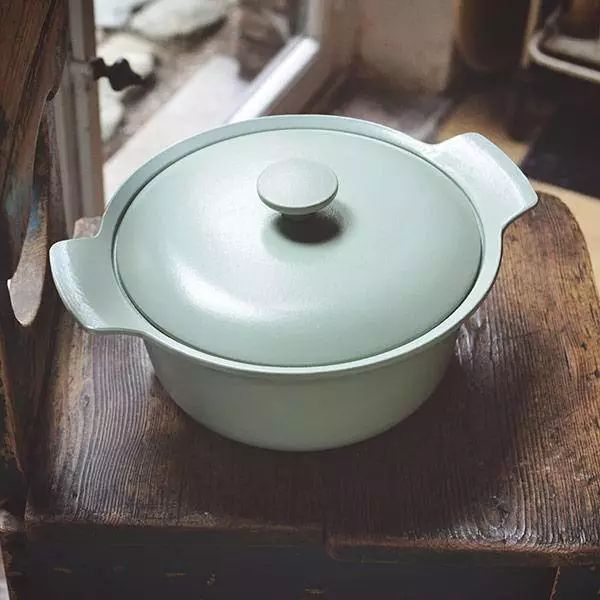 南部铁器是岩手县传承几个世纪的工艺技术,采用生铁制造,铁器本身的密度与厚度优于一般铁器。岩铸 IWACHU 是岩手县众多制作铁器的品牌之一,创业与1902年,他们近年来开发的新品系列有着现代的造型,价格相对平易近人。一只直径24cm的带盖圆形铸铁锅,售价大致为200美元出头。