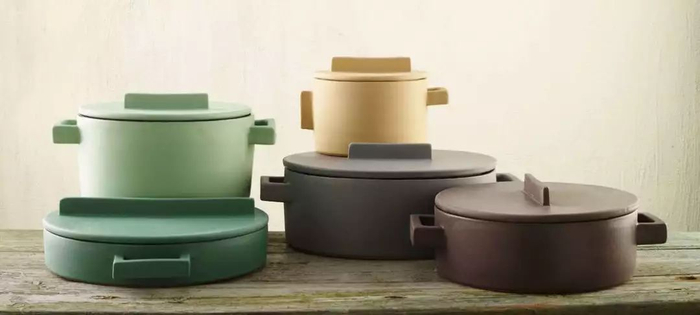这套铸铁锅具看起来仿佛是陶土的质感,这也是该系列名字“TerraCotto”的来历。Sambonet 原本是意大利做餐具起家的品牌,2014年推出了这套造型非常别致的铸铁锅系列,无论是颜色还是造型,都别具一格,所以比起厨具店,你更可能在欧洲的一些精品设计家居店看到它们的身影。