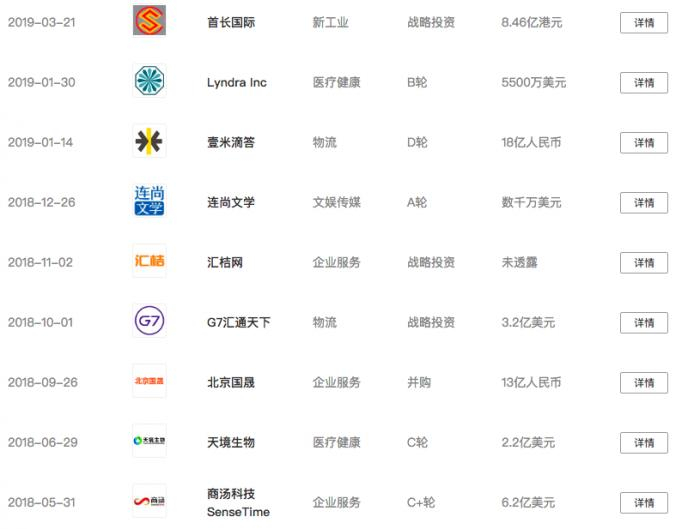 最新的投资动态是,2019年3月,首钢集团旗下城市综合服务平台首长国际(0697 .HK)获得厚朴投资、经纬中国、彤程投资的战略入股,金额总计8.46亿港币。