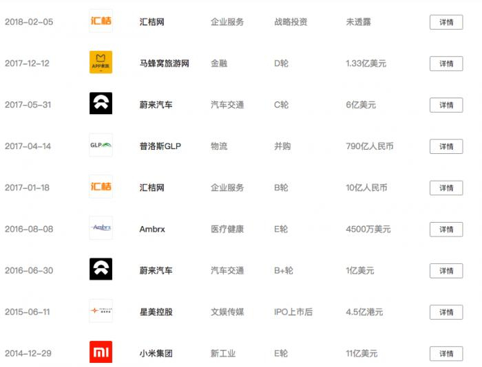 参投小米、马蜂窝、蘑菇街等明星项目