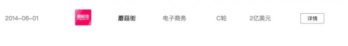 2014年6月,蘑菇街获得2亿美元C轮投资,由厚朴投资、挚信资本等数家基金共同领投,启明资本、IDG资本、高榕资本等基金也参与了投资。