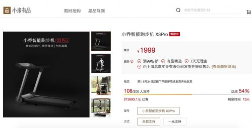 小乔智能跑步机X3 Pro上架小米众筹 众筹价1999元