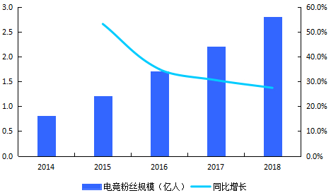 产业规模与用户规模的双双迅速增长,让电竞成为中国游戏产业和体育产业重要的细分领域之一。根据艾瑞咨询统计,在市场规模快速增长的同时,电竞粉丝规模也迅速扩张。