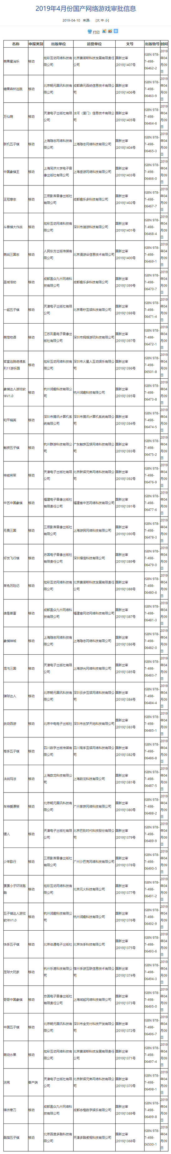 2019年4月10日,40款;