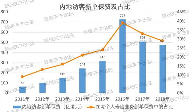 公开数据显示,由于各类管制措施的强化,香港保险市场上由内地访客带来的新造保单保费已经连续两年下降,但即便如此,2018年,这一数字仍然达到了476亿港元,占香港个人业务总新造保单保费的29.4%,内地访客早已经成为香港保险市场最重要的保费来源。