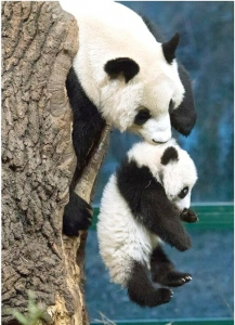 大熊猫和可爱的幼崽。