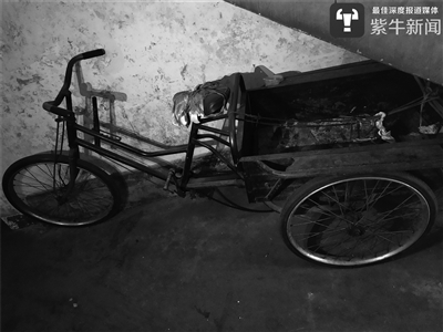 4月10日中午,扬子晚报紫牛新闻记者来到老人生前所在的小区,看到他曾居住的车库大门紧锁,楼道内还停放着他生前拾荒用的小型三轮车。