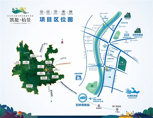 凯旋·怡景位居石林南路,步行10分钟可到达石林城央,毗邻石林一中、周边银行、大型超市、餐饮、医院、酒店等生活配套一应俱全,尽享生活的从容便利,近距离感受石林城市繁华。