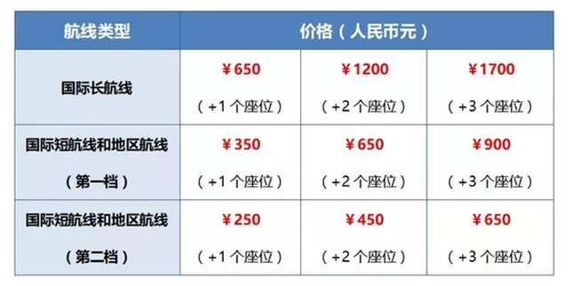 日前,南航推出经济舱“一人多座”新项目,国际和地区航线的每名旅客最多可以再加购3个座位。加座费用为固定价格,按照航程长短不同收取,最贵的国际长航线加购3个座位费用为1700元,最便宜的国际短途或地区航线加购1个座位收取250元。