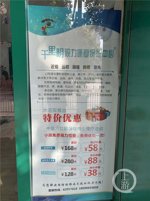 4月10日~12日,上游新闻记者暗访主城区多所中小学附近的视力矫正机构发现,仍有部分商家进行违规宣传。