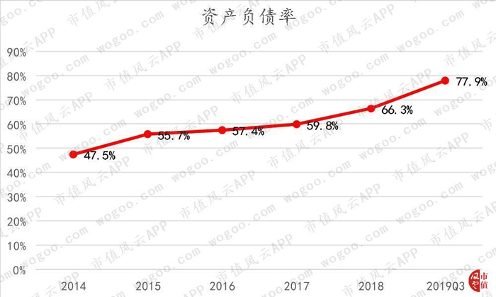 大量的股票回购直接导致公司的资产负债率近年来一路走高。截至2019财年前三季度,资产负债率已经从2014财年的48%上升至78%。