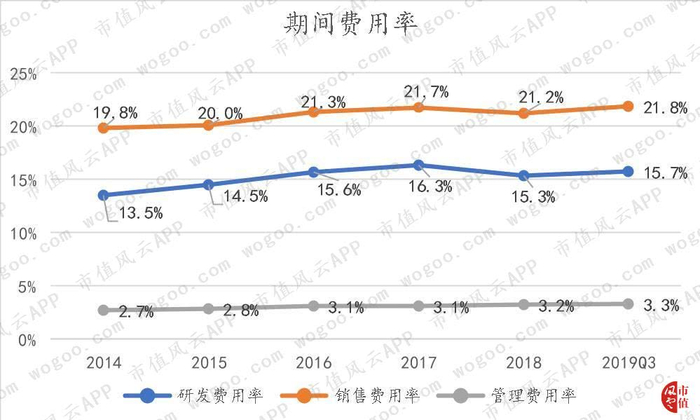 2018财年,公司的研发费用率和销售费用率分别为15.3%和21.2%。