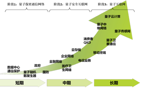 长远来看,随着量子卫星、量子中继、量子计算、量子传感等技术取得突破,通过量子通信网络将分布式的量子计算机和量子传感器连接,还将产生量子云计算、量子传感网等一系列全新的应用。