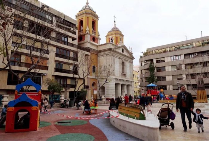 4月4日,人们在西班牙阿尔梅里亚市中心附近的一处广场上休息。新华社记者郭求达摄