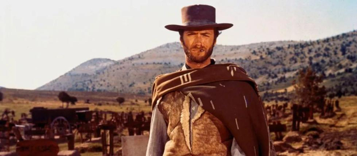 克林特⋅伊斯特伍德在《荒野大镖客》中的经典形象。此片在位于阿尔梅里亚的塔韦纳斯沙漠拍摄。