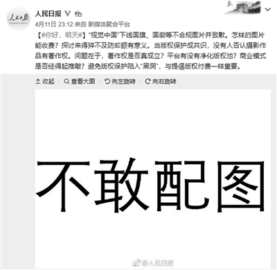 从给黑洞照片打上版权,到被网友扒出网站明码标价出卖国旗、国徽、故宫等图片。视觉中国接连被共青团中央官方微博、新华社等点名批评。4月12日凌晨,天津网信办连夜约谈视觉中国,并成立工作督导组进驻,责令全面彻底整改。