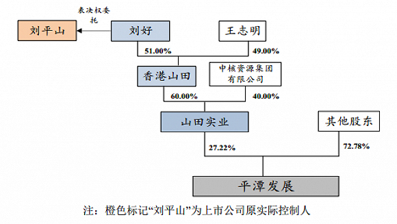 也就是说,变动之前,上市公司的实际控制人为刘平山,王志明除持有香港山田少数股权之外,未通过其他主体直接或者间接持有上市公司股份。