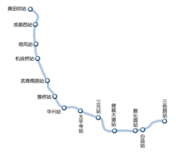 成都轨道交通9号线是位于成都市三环、四环之间的一条线路,是城市快速轨道交通层次中的市域快线。一期工程从三色路站至黄田坝站由南至西沿顺时针方向敷设,线路全长22.18公里,全线均为地下线,共设13座车站,其中换乘站达11座,设计时速为100公里。