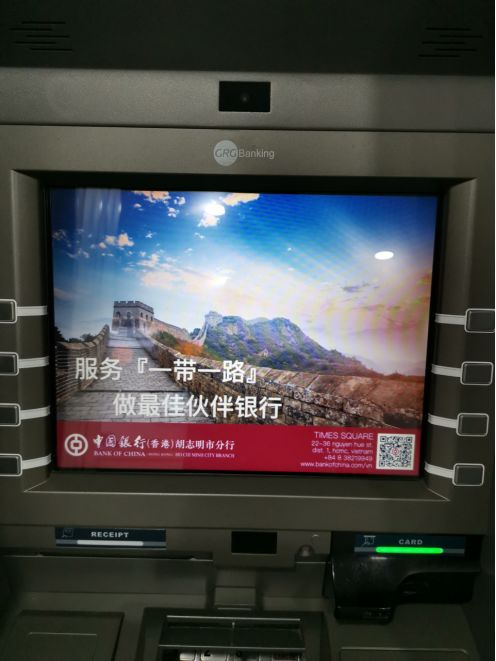 中国银行胡志明分行ATM屏幕上写着服务“一带一路”