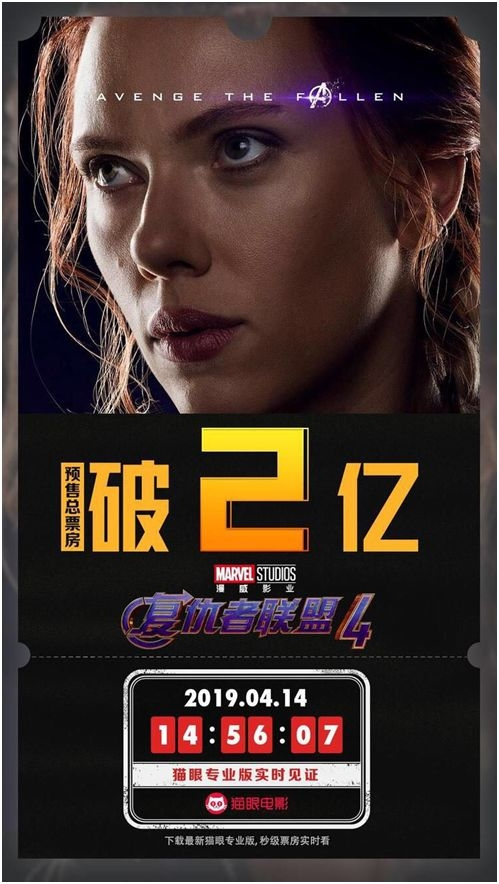 今天下午,据猫眼数据,《复仇者联盟4》中国内地预售2天时间票房已破2亿,距离上映还有9天。
