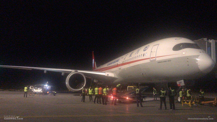 据介绍,此次执飞成都至乌鲁木齐航线编号为B-304V的飞机是四川航空接收的第二架空客A350-900型客机。