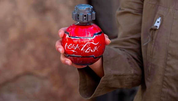 这款圆形机器人外形的饮料,有可乐、雪碧、Dasani矿泉水三种规格。在园区内,连饮料上的可口可乐Logo都被设计成了星球大战剧情里的书写文字系统Aurebesh文。“饮料的瓶身形状、图案、瓶盖等细节,都是星球大战自己的设计语言,”迪士尼乐园幻想工程负责人Scott Trowbridge在活动现场说。