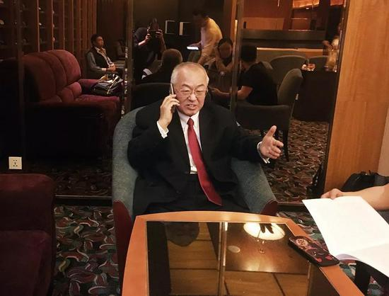 2019年4月10日上午,顾雏军在最高法再审宣判之后打电话向亲友通报结果。摄影/《财经》记者 王丽娜