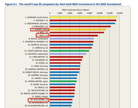 华为研发费用全球第五 比苹果还高