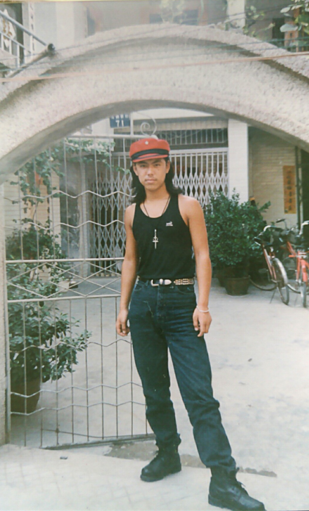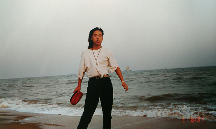 1992年一到海南,我发现满大街都是长头发。那时摇滚兴起,两股尖儿黑背心,浅色或蓝色的牛仔裤,高帮军勾鞋,大长头发,再戴一墨镜,这就是最正的摇滚范儿。那时全国各地好多搞音乐的都集中到海南。在那个环境下,形象上得像那么一回事儿,不能输人。于是我也开始留长头发。