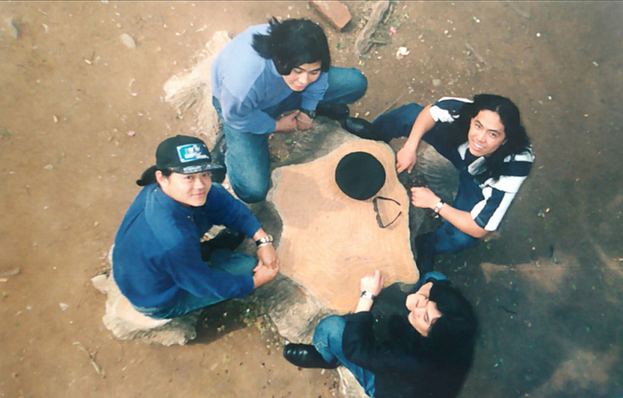 1994年,乐队在海口(上:旺那日松,下:那日苏,左:张港,右:范俊义)