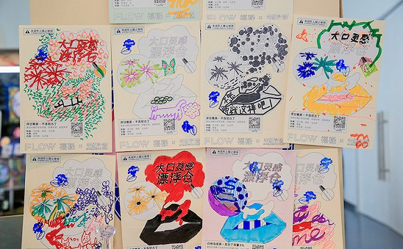 在另一个“口味”拼贴创作区中,FLOW福禄与联名艺术家充分发挥体验者的主观能动性,让它们根据体验感受自行创作野生拼贴画,荒诞与新潮结合,趣味十足。这种独特的融合性体验,一如FLOW福禄的白桃乌龙茶和绿豆沙口味烟弹的存在——这些在日常生活中茶香和美味,因为融入到电子烟的口味中,被赋予了新潮的摩登形象。