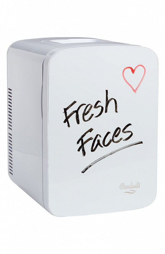 最近,在Instagram上流行起一种将化妆品放到小冰箱中的收纳方法:既利用冰箱本身已有的分层架构来让一切井井有条,又能让喷雾、面膜等单品在冰镇后带来更凉爽的使用感。其中最值得关注的是家电品牌Cooluli推出的两款小冰箱产品:一款以奶牛斑纹为灵感,黑白交叠的观感显得十分可爱;另一款上的“FRESH FACES"以及爱心图案则在简洁的设计中透露出温馨居家感。