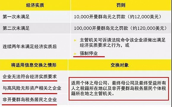 如果拒绝“实质”,将被罚款,或者强制给你注销(两次不满足),同时会将信息交换给开曼壳公司的母公司、最终母公司以及最终受益所有人税籍所在地。