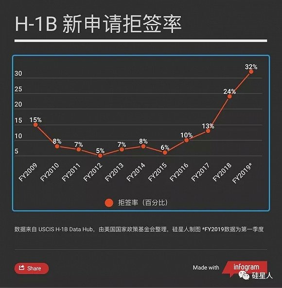 因为这一解读和执行的问题,H-1B的拒签率在特朗普上台后有了显著提升: