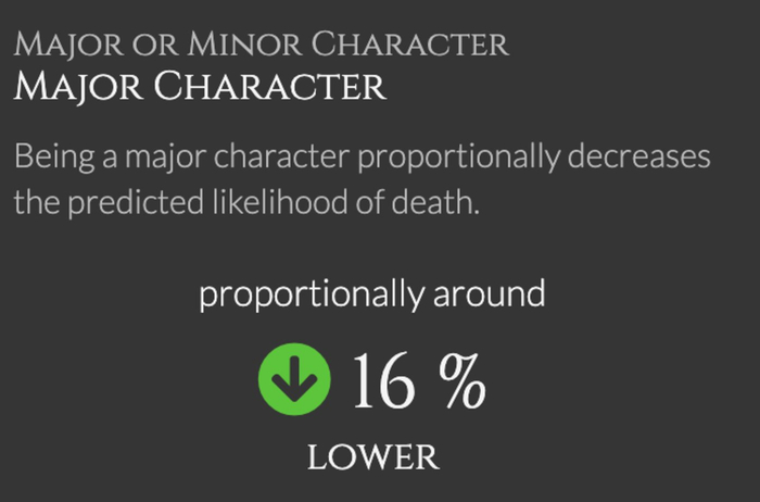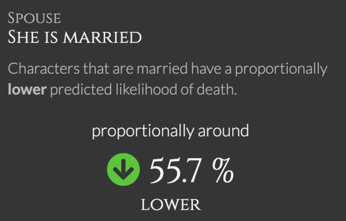 算法具体怎么做的呢?简单来说,就是通过从原著和已播的剧集中提取人物角色、身份、性别、亲属数量、年龄、忠诚度、死亡概率等等来进行数据分析预测。