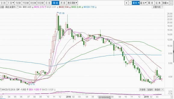截至2019年3月28日,迅雷股价报收3.76美元,与2017年11月27日高点27美元相比,已暴跌86%,其股价重返2017年9月推出玩客云前夕的附近。
