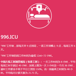 996事情缘起于3月26日,一名程序员建立了一家叫做“996.ICU”的网站。吐槽每周最低72小时的工作制。