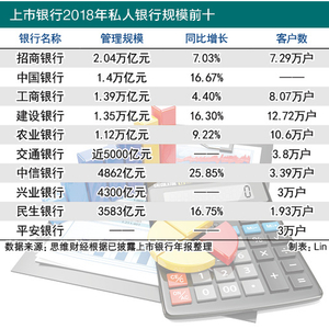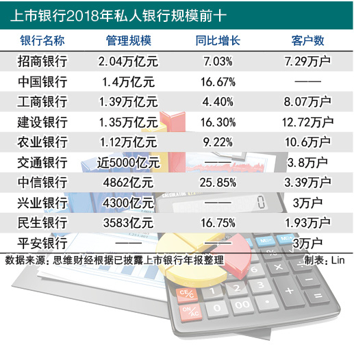 股份制银行对私行业务的热情尤为高涨。2018年下半年,平安银行私人银行、财富管理业务进行了重组整合,平安信托财富管理团队全面并入平安银行私人银行,中后台团队近500人。此外,兴业银行方面也表示将私人银行定位为财富管理和资产管理的枢纽,抓住机遇发展私人银行业务。