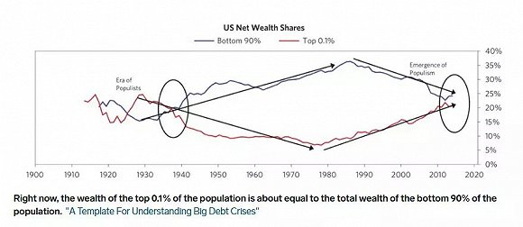 达里奥多次警告:美国群体财富差距已经和“大萧条”时期差不多了。