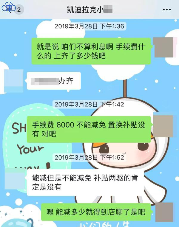 张女士还向记者表达了疑惑:“无论什么价位的凯迪拉克汽车,都一律收取8000元金融服务费,这合理吗?”