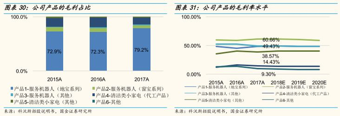 服务机器人的毛利率高达50%,线上综合毛利率为51%,线下综合毛利率为44%。清洁类小家电主要以代工产品为主毛利率维持在15%。因此公司提升毛利率高的服务机器人比重也极大的提升了公司整体毛利率水平。