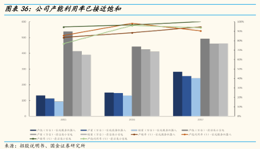 产能利用率已接近饱和,募资解决产能瓶颈:2017年,公司自主生产的家庭服务机器人产能、产量和销量分别为282.02/255.09/241.36万台,同比增长87.74%/72.63%/84.70%。产销率为94.62%,产能利用率为90.45%。在产销率不断攀升、市场空间巨大的前提下,限制公司营收的关键因素之一为产能上的天花板。公司此次募集资金大部分将用于“年产400万台家庭服务机器人项目”,用以扩大规划类家庭服务机器人的产能,进一步满足市场需求升级的需要,以稳固公司市场份额的领先优势。