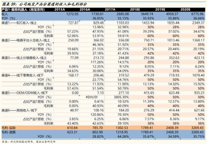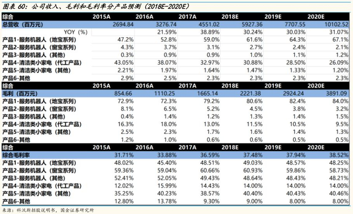 服务机器人业务(地宝、窗宝以及其他产品)目前尚处于渗透率较低的阶段,因此以地宝为例,2018E-2020E营收增速上给与36%/36%/37%的增长假设。
