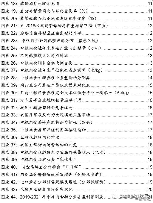 背靠中粮集团,全产业链布局优势尽显。中粮肉食自创立以来一直致力于布局猪肉行业全产业链,背靠中粮集团,全产业链协同优势更为明显。公司核心业务为生猪养殖,受猪价影响明显。2018年猪价下跌拖累公司全年盈利呈现亏损状态,我们认为,在18年业绩低基数的情况下,19年有望实现一个较高的增长,核心逻辑为: