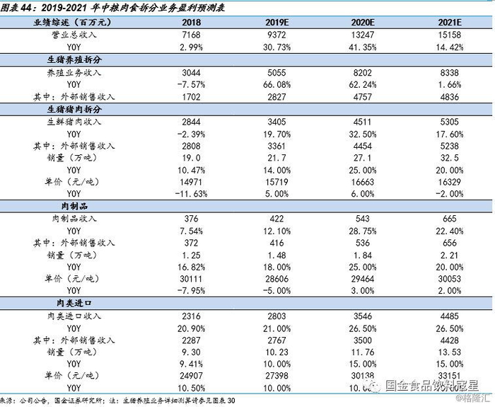 结合以上分析,我们对中粮肉食全业务盈利预测如下: