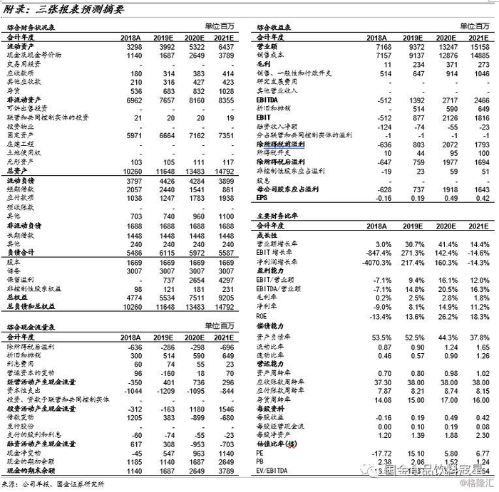 从2019年1-3月数据来看,生猪价格已有回暖迹象。据中国种猪信息网数据,3月底全国22省市生猪平均价格已超过15元/kg。19年预计随着生猪供应量的下降猪价有望回升,20年供需偏紧趋势有望延续(能繁母猪的下降会影响后期1-2年供应),预计20年猪价仍有上涨空间。由于公司业绩受猪价变化影响较大,我们预计19年公司生猪销售均价约为14.8元/kg,20年可增至17.8元/kg,据此我们给出生物资产公允价值调整后盈利预测(与公司历年报表端口径一致,成本经过调整,毛利率低于调整前数字):预计公司19-21年实现营业收入分别为93.7亿元/132.5亿元/151.6亿元,分别同比+30.7%/41.4%/14.4%;归母净利润分别为7.4亿元/19.2亿元/16.4亿元,分别同比+217.4%/+160.3%/-14.3%,对应EPS分别为0.19元/0.49元/0.42元,目前股价对应19/20/21年PE分别为15X/6X/7X,首次覆盖,给予“买入”评级。