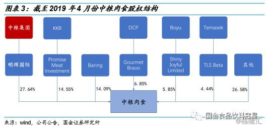 背靠中粮集团,全产业链协同保障公司可持续发展。公司实际控制人始终为中粮集团,2011年为借助国际资本壮大公司规模,中粮肉食引入日本三菱系(MIY)作为战略投资者。2014年先后引入KKR、霸菱、厚朴(2015年替换为淡马锡)、博裕作为战略投资者,国际化战略部署拉开序幕,综合实力大大增强。目前,中粮集团通过旗下全资子公司明晖国际持有公司股份27.64%,仍然为公司的控股股东以及实际控制人。中粮集团是全球领先的农产品、食品领域多元化产品和服务供应商,集农产品贸易、物流、加工和粮油食品生产销售为一体,资产超过719亿美元,336个分公司和机构覆盖140多个国家和地区,在中国拥有超过180家工厂,230万家终端售点遍布中国952个大中城市、十几万个县乡村。中粮肉食背靠中粮集团,一方面受益于其雄厚的资金能力,另一方面受益于中粮集团完善的销售渠道与产业链分布,为公司的持续发展带来增长助力。