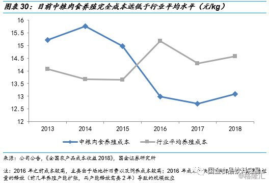 自繁自养模式保证猪肉品质,试点合作养殖助力产能扩张。目前来看,中粮肉食的主要养殖模式还是以自繁自养为主,养殖一体化从育种到育肥环节全部自己负责。与温氏股份等完全采用“公司+农户”合作养殖模式(公司进行上游的育种,农户完成下游的育肥,公司给农户一定的委托育肥费用)的企业相比,自繁自养更能随时监测养殖状态,能够更加有效的保证养殖质量。与牧原股份等完全采用自繁自养模式的企业相比,中粮肉食已试点“公司+农户”的合作养殖模式,未来将采用自繁自养和合作养殖“双轮驱动”进行产能扩张。另外,中粮肉食的央企背景能够进一步保障公司的生猪养殖品质,使其猪肉质量远超行业平均水平。