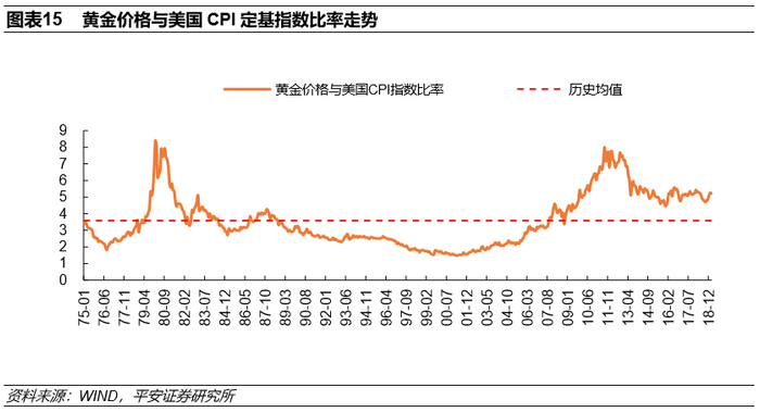 第三,金价与美国CPI比率近期已达到5.2的高位,已脱离3.58的中枢有一定距离,未来该比率可能有所回落,这将给金价带来一定程度的利空。