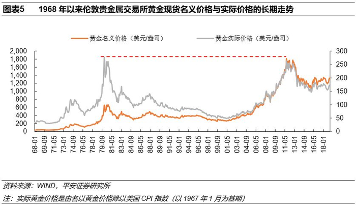 2.2 实际金价走势与名义金价显著不同,八十年代仍是历史最高点